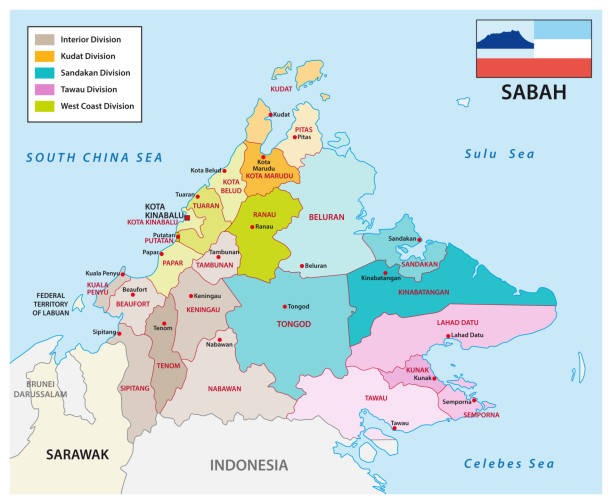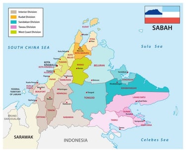 Divisions: West Coast Division, Interior Division, Kudat Division, Sandakan Division, & Tawau Division
